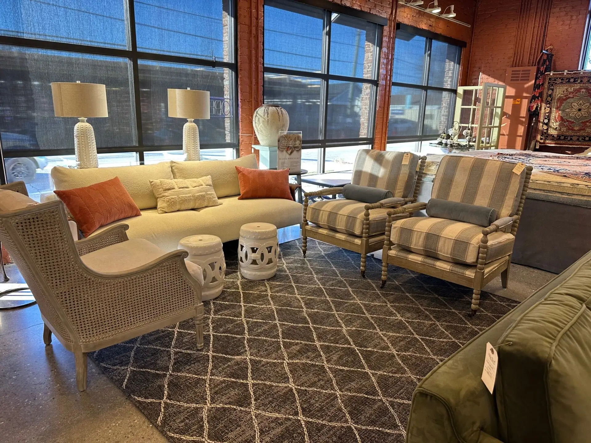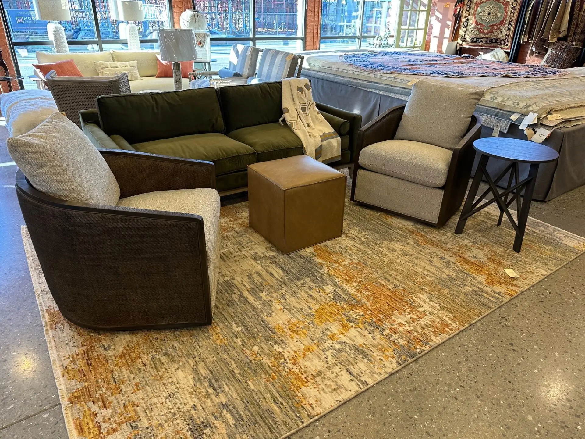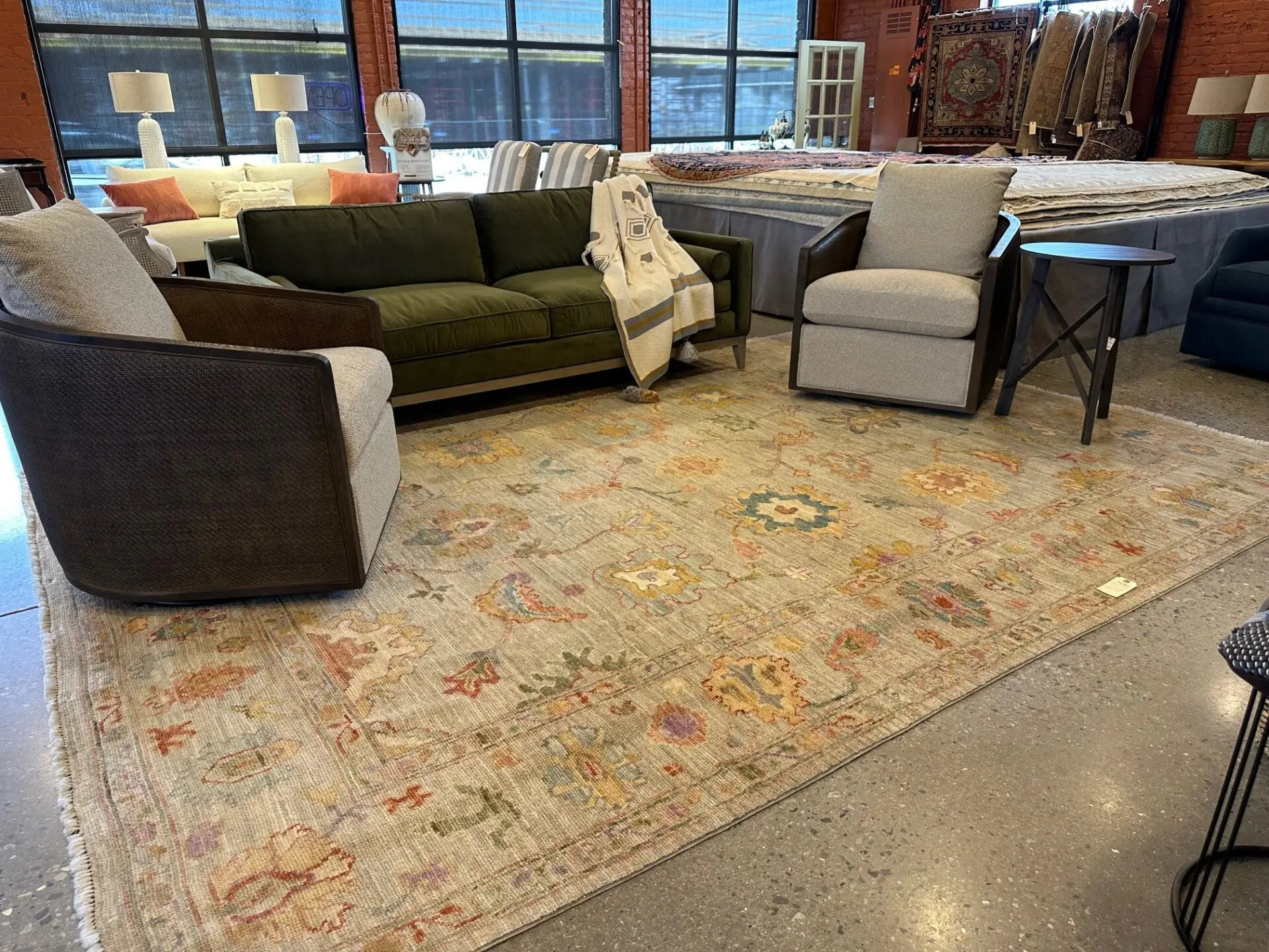 Some say “change the rug, change the room”… we mimicked that with the vignettes in our showroom. As you pay closer attention to the details, you can see how each rug achieves different things for the individual spaces.  It all starts with a conversation! Let’s chat about how we can help you revitalize your existing space. If you don’t see it in our store, do not give up on us. We can source rugs from over 40 different importers to find the right fit for each of our customers.