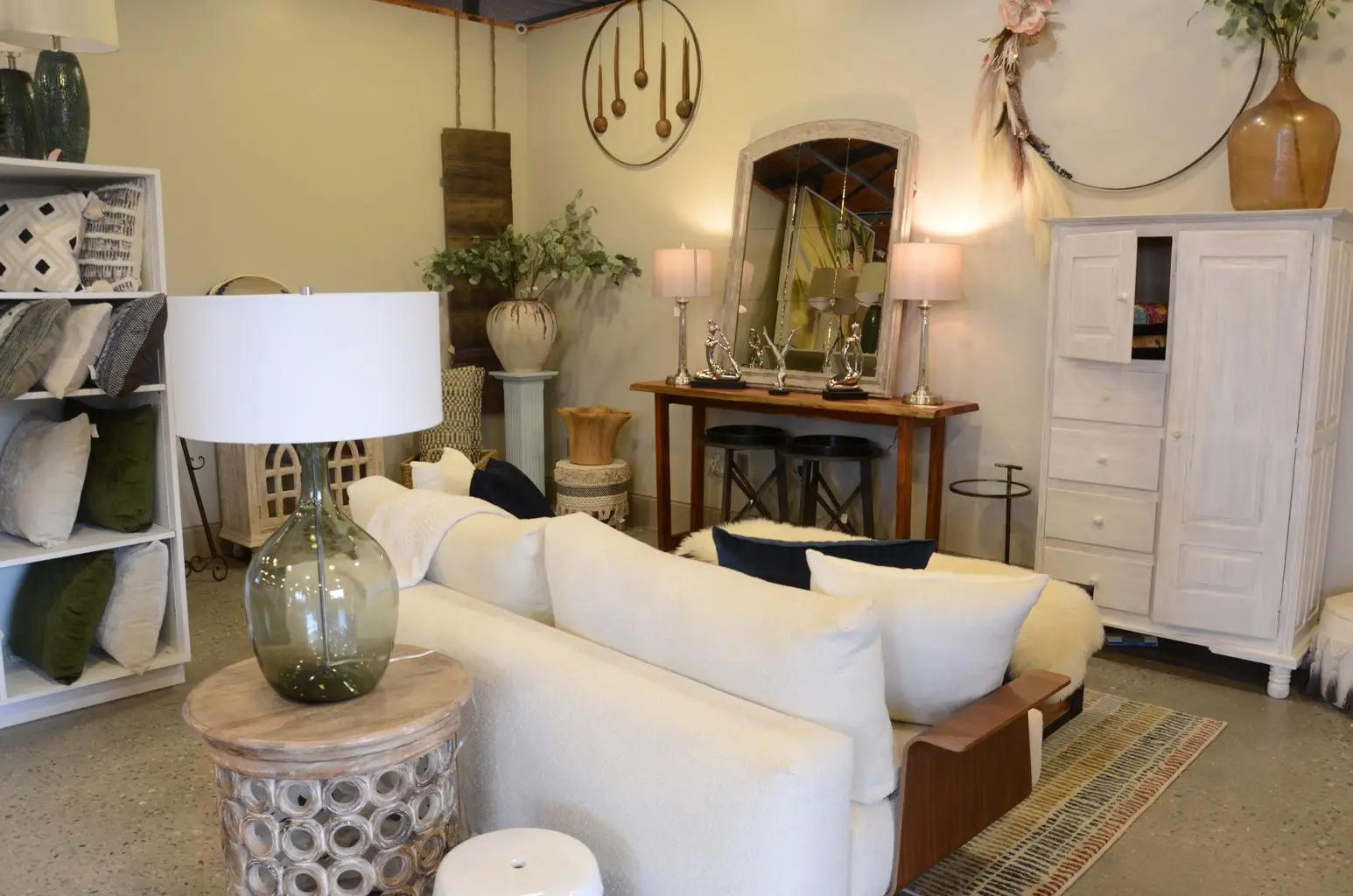 We show small groupings of lamps, pillows, art, custom furniture, and “unique finds” all available for sale off the floor in our downtown Chattanooga showroom. Our space is more of a boutique atmosphere with a bit more variety than you might think a rug store would have. We also source from a large number of vendors and talented artisans whose products have their own unique flair.